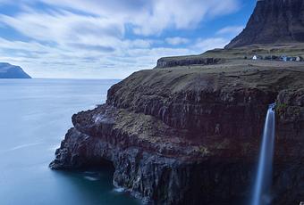 Cliquez pour voir la photo en grand, ça vaut le coup. Il s'agit du village de village de G·sadalur, avec l'ile de Mykines das le fond (archipel des Feroe). Jusqu'à ce qu'un tunnel soit construit en 2004, les 16 habitants devaient marcher ou aller à cheval pour traverser une montagne haute de 400m, pour rejoindre les autres villages. Photo par Ken Bower.