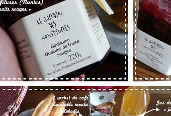 Personnellement, j'ai eu un petit melting pot des artisans régionaux partenaires de Tartines sous la couette, du miel de l'Atelier du Miel (Bordeaux), de la confiture du Jardins des Confitures (Nantes), du jus de pomme de La Bonnerie (Paris)Mais pour les parisiens, cela donne :