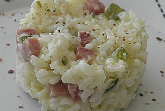 Après le Risotto Lardons et Gorgonzola , Risotto Lardons et Parmesan j'ai récidivé avec ce risotto jambon et courgette...je pensais que certains aller faire la grimace mais meme pas, d'ailleurs il en reste plus!!