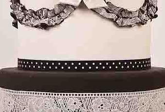 - Sur les nénés: des fronces de pâte à sucre noire couverte de dentelle blanche, et des petits nœuds nacrés