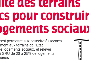 - « Je mettrai gratuitement à disposition des collectivités locales les terrains de l'Etat qui sont disponibles pour leur permettre de construire des nouveaux logements sociaux dans un délai de 5 ans»
