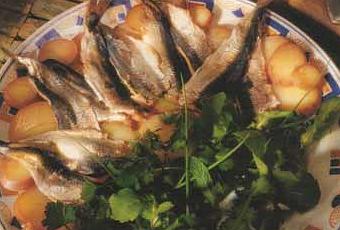 - Faites-les revenir sans coloration dans 1 cuillerée à soupe d’huile. Ajoutez l’huile restant, le vinaigre, l’ail pelé et haché, le Cayenne et 1 branche d’estragon. Laissez bouillir pendant 3 minutes. Versez aussitôt sur les sardines. Quand la terrine a refroidi, couvrez-la, mettez-la 24 h au réfrigérateur.