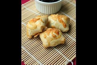 - Mettre un peu de béchamel, un morceau de saucisse, un peu de moutarde puis refermer la pâte feuilleté autour du morceau de saucisse.