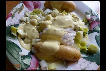 Huit minutes avant la fin du temps affiché, ajouter sur les poireaux le ou les filets de cabillaud (environ 120g par portion), salés et poivrés, remettre le couvercle et laisser cuire jusqu'au bout.