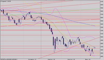 Donc cette consolidation court terme dont je parlais hier pourrait se poursuivre vers le support des 4600 points, mouvement qui resterait ainsi peu profond s'il était confirmé. Ensuite, la puissance des achats constatée hier devrait reprendre assez rapidement à partir de ces niveaux.