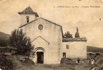 Je remercie Christiane Pinsard (Orléans) qui a des racines ampusiannes et qui a eu la gentillesse d'envoyer au Toupin une photo ancienne de la chapelle du Plan. Observez-la bien et vous apprendrez bien des détails intéressants . Par son mail vous saurez les noms des personnes de sa famille (le fameux nougat du Plan...c'est la famille...)