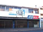 l’alignement de la façade de la pharmacie. Les vitrines sont