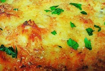 7. Parsemer de fromage râpé, ensuite de chapelure et disposer quelques fines parcelles de beurre.