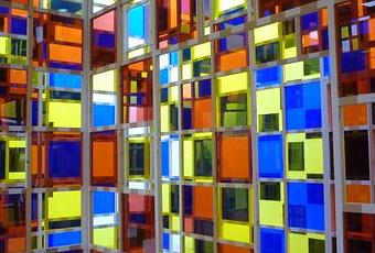 LAM, musée d'art moderne à Villeneuve d'Ascq - Buren, les trois cabanes éclatées.
