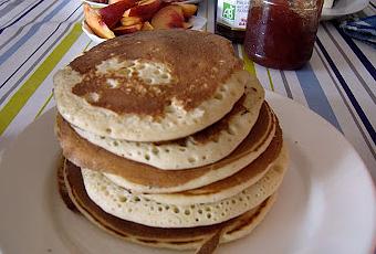 Natures, saupoudrés de sucre ou bien tartinés de confiture ou de chocolat ces pancakes sont extras! C'est encore une recette réussie provenant du livre "Comme un Chef" qui est une vraie bible de la cuisine :-)