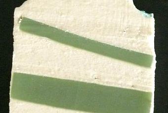 J'ai d'abord réalisé mon savon vert foncé, que j'ai coulé dans un moule. Une fois durci, je l'ai ensuite coupé en plusieurs épaisseurs.