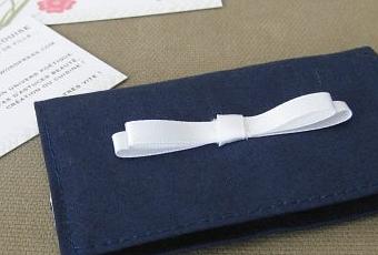 Moi, j’utilise une petite pochette réalisée sur mesure ! Il me restait des chutes de tissus bleu marine et blanc à pois suite à la réalisation d’une commande personnalisée. Du coup, je les ai joliment recyclées, est-ce que ça vous plait ?