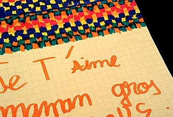 C'est le roi des attentions cet enfant, toujours le petit mot ou le truc qui fait fondre. J'ai eu droit à un de biens jolies lignes, que je garde pour moi, puis cette création avec un mot doux. Comment vous dire ? Je l'ai regardé, j'ai souri bêtement et tout à coup je l'ai revu quand il avait 3 ans ... Nous sommes allés jeté un oeil sur le tableau où il a punaisé quelques photos de quand il était "petit" et je lui ai expliqué que parfois les parents étaient très étranges. Oui étranges parce qu'ils ne voient pas leurs enfants grandir toujours très bien. Je lui ai dit que parfois il m'arrivait encore de le voir comme sur cette photo où il avait 4 ans...