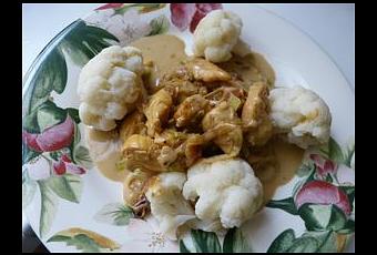 Servi ici avec des fleurettes de chou-fleur cuit à la vapeur.