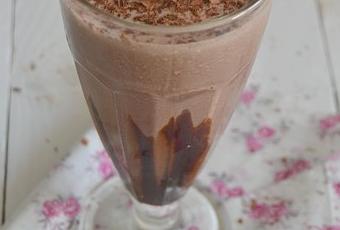 Pendant ce temps déposer du coulis de chocolat sur les parois des verres (pas nécessaire, c'est juste pour faire joli), puis verser la préparation dedans.