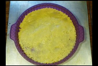 Répartissez la pâte refroidie dans un moule à gateau et versez la crème par-dessus.
