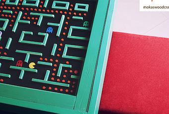 Accompagnée de ses tabourets reprenant les couleurs du jeu, voici une sympathique table basse Pac-Man. Conçue par un certain Thanasis Mokas (Grèce), le plateau de jeu est installé sous une plaque de verre. Aucun prix annoncé, il ne s’agirait donc pour le moment d’un modèle unique.