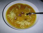 Servir bien chaud dans des assiettes, bols ou verrines et ajouter les cubes de jambon de sanglier et l’emmental râpé.