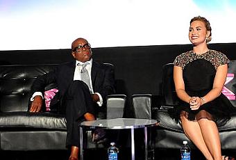 Voici des photos du jury de The X Factor pendant la séance de questions/réponses au Graumans Chinese Theater de Hollywood.
