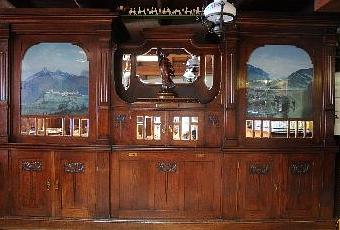 Le meuble en chêne de 4 m. de long et 2.5 m. de haut pesant une tonne, a 2 vitrines animées en ombres chinoises représentant à droite un défilé sur le pont du Javroz à Charmey sous un ciel traversé d’aéronefs et à gauche un lever et un coucher de soleil sur la ville de Gruyères.
