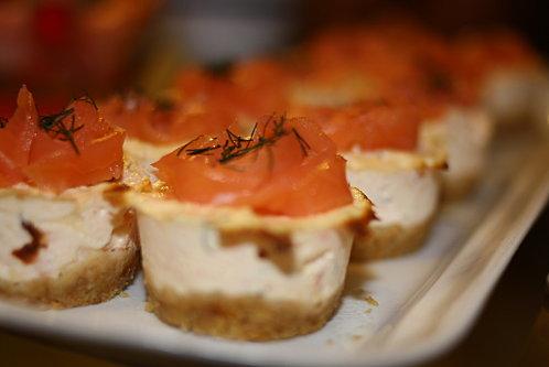 Laisser refroidir avant de démouler. Jusqu'au moment du service, placer ces cheesecakes au frais. Décorer avec des lamelles de saumon fumé et de l'aneth.