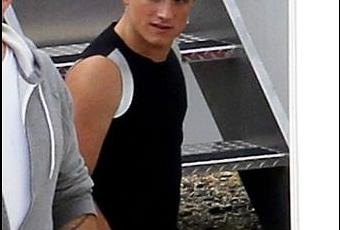 Hypable a révélé les premières photos du tournage du 2ème volet du film The Hunger Games (L'Embrasement). On aperçoit Peeta et Katniss dans des costumes d'entraînement, ainsi que Finnick dont on n'a pas fini d'entendre parler s'il passe son temps à se promener torse nu^^.