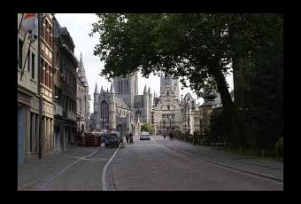 Plus loin, dans le même parc de la Citadelle, Leo Copers a installé son cimetière de musées. Un ensemble de pierres tombales,sobres et magnifiques, portant comme inscriptions funéraires les titres et initiales de quelques célèbres institutions muséales. Rapport à la mort, rapport aux musées, à la mémoire, au parc arboré qui caresse si bien ces tombes. Ces édifices signalant la ligne réversible, facilement franchissable, séparant mémoire et oubli, organisent un lieu de réflexion sur l’ensemble des déformations dont peuvent faire l’objet ce dont il faut se souvenir et orienter les pratiques du souvenir vers une discipline du soin et de l’attention ou au contraire vers une sorte de consommation valant « violence des effacements ». L’artiste entend nourrir une critique du musée qui « s’est transformé au cours de la dernière décennie d’un mausolée plongé dans le silence en un parc d’attractions pour la participation de masse et le tourisme culturel. » (TRACK, Guide du visiteur) Cette image très simple et forte suffit à convaincre qu’il faut repenser et déplacer l’expérience esthétique au monde. Ce que permet d’expérimenter l’essentiel de TRACK, en proposant, par l’art, de penser autrement tous les défis du vivre-avec que doit affronter une politique urbaine. Penser autrement le monde, et ses ruptures masquées, passées à la trappe, cela implique que, même subjugué par la beauté historique d’une ville opulente, élégante telle que Gand, on se laisse tarauder par des ritournelles du genre Search and Destroy, comme l’inscription géante que Mekhitar Garabedian appose contre la façade de la Maison des Bouchers, symbolisant la splendeur architecturale de la ville. Destroy and Search est le titre d’un morceau célèbre des Stooges et le nom d’une « stratégie militaire pendant la guerre du Vietnam » (TRACK, guide du visiteur) ! Il est remarquable de constater après coup, que les quelques œuvres que j’ai retenues de ce parcours artistique délimitent et questionnent le territoire de cette dialectique du Destroy and Search/Search and Destroy qui instrumentalise une part important du marché des expériences esthétiques et qu’il conviendrait de dépasser. Ce que rend possible la pluralité d’influences relationnelles convergeant dans les installations de TRACK, évitant les points de vue unilatéraux et leur appel aux émotions béates.