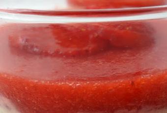 Mixer 350 g de fraises avec le reste de sucre et le jus de citron.
