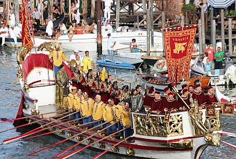 Dimanche 2 septembre 2012 s'est déroulée sur le Grand Canal la Régate Historique (chaque année le premier dimanche de septembre). Tout d'abord, la Regata Storica commence par le Cortège Historique composé de somptueux bateaux avec des personnages en costumes de la Renaissance, Doge et Dogaresse, jolies femmes et courtisanes, au son des trompes, le long des palais décorés pour l'occasion, de la Salute jusqu'au Rialto. Puis commencent les régates qui rassemblent les meilleurs rameurs de Venise et des environs. Ces courses acharnées que des milliers de personnes massées le long du Grand canal encouragent et acclament, sont l'un des évènements les plus prisés des vénitiens car ils en sont les véritables acteurs, contrairement à des évènements comme le Carnaval de Venise où le plus grand nombre des participants sont étrangers à la ville.