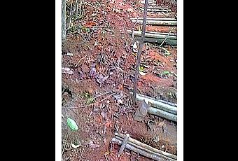 A partir de bois trouvé sur place en brousse pour consolider cette oeuvre qui, je vous le rappelle, se doit d'être durable...
