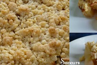 Quand mon grand cuisine, nous nous régalons!!Ingrédients5 pommes2 poires150gr de farine100gr de beurre mou100gr de sucre roux1 c. à c. de poudre de vanilleEplucher les pommes et les poires et les couper en morceaux de taille moyenne.Dans un bol mélanger du bout des doigts la farine, le beurre mou et le sucre,jusqu'à ce que l'on obtienne des boules de toutes tailles.Dans un moule à gratin, disposer les fruits puissur le dessus le crumble, sans le tasser.Four 180°C pendant 30 minutes.A déguster chaud ou froid!