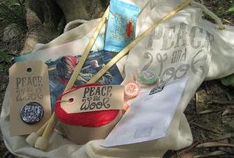 ... C'est le nom du kit PEACE AND WOOL que j'ai tricoté dernièrement. Un kit qui donne envie de tricoter: des aiguilles en bambou, du fil de haute qualité, des explications claires, des goodies super sympa (bonbecs, sachet de thé, badge, ruban "tricoté avec amour", une photo sous forme de carte postale pour avoir en vue l'objectif à atteindre, et un beau sac pour emmener partout son ouvrage).