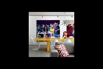 Beaucoup de couleurs vives dans ce duplex qui respire la gaieté et la joie de vivre. Cet appartement fait la part belle aux nombreuses œuvres d’art que possèdent les propriétaires, ce qui donne beaucoup de caractère et de personnalité à cet appartement.