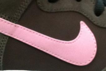 La Nike SB Dunk High Smoke Ion Pink revêt une construction en daim marron clair et marron foncé contrastés par un swoosh rose et une semelle intermédiaire blanche.