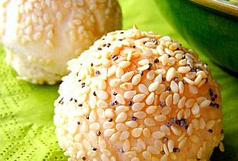Reprendre chaque balle une par une dans les mains mouillées et les rouler dans les graines de sésame ou un mélange sésame-pavot.