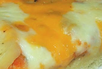 - Poser dessus : les allumettes de bacon, les pommes de terre coupées en rondelles, le cheddar râpé, la mozzarella coupée en dés. Saler, poivrer.