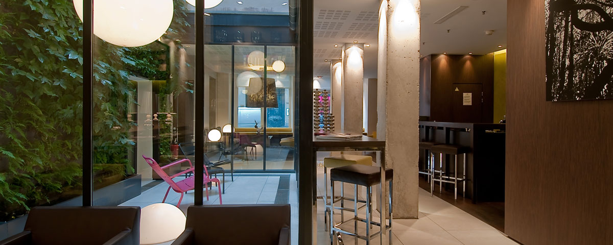 Un univers « déco-métissé »Le cœur du Marais, entre la Mairie de Paris et le centre Pompidou abritera un boutique-hôtel d'un genre particulier, puisqu'il sera l'un des rares à se transmettre de mère en fille, de génération en génération ! L'architecte d'intérieur, Jean-Philippe Nuel, aura su allier, ici, le design épuré au XVIIe siècle raffiné. Tour à tour hôtel Sansonnet, puis Axial Beaubourg, et, pour finir (tout du moins lui souhaitera-t-on), Duo Hôtel, il interpellera si bien que l'on n'aurait pas manqué de le remarquer tant, dans le paysage, il « trancherait ». Une double porte vitrée (électronique), moult orchidées en « col de verre », et des fauteuils dispatchées, un desk de bois plané, des tubes, et boules chromés, et puis un réceptionniste disponible, mais pas aventureux, qui nous laissera monter tous nos effets, le bienheureux ! Un petit tour du « propriétaire » nous engagera à découvrir un univers « déco - métissé », tables basse laquées, fauteuils, et canapés, pied de coq chocolaté et ocré, en alterné, gros abats-jour perforés, console élancée et « chapeautée », coin canapés, « jardin d'hiver » vitré, et transats pour bronzer !