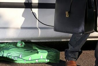 On a tous un jour imaginé faire sa vie avec une bouée crocodile. C’est un fantasme évident que nous partageons mais qui reste encore tabou et sur lequel il est difficile d’engager une conversation lors d’une soirée. Heureusement, les oeuvres du jeune photographe Mathieu Roquigny témoignent enfin ce rêve tant approché et nous informent que l’on peut très bien vivre au quotidien avec un animal en plastique. A condition de ne pas rouler dessus bien évidemment. Ou de l’oublier dans la grande roue. Un travail sublime donc qui évolue entre absurdité, burlesque, fantastique où le crocodile est roi et ou les grands enfants n’ont pas le temps d’atteindre le 7ème ciel.
