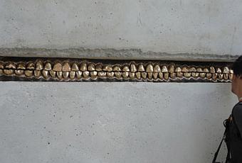 L'artiste a utilisé des moules de véritables prothèses dentaires pour réalisé cette pièce, où les alignements de dents subissent le poids des 17 tonnes de béton.