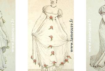 représentant un « Costume de Bal » porté par une danseuse. Planches 463 de l'an 11 (1802-1803) et 592, 609 de l'an 13 (1804-1805).