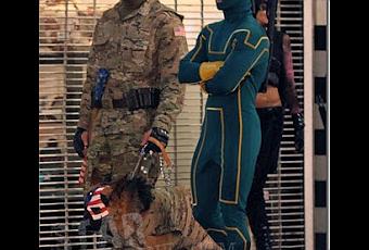 Buzz : Le tournage de Kick-Ass 2 : Balls to the wall ("Les couilles au mur", quel titre !) se déroule à Toronto, en ville. Badauds et fans en ont profité pour mitrailler les acteurs. Voici donc la première photo de Jim Carrey, habillé en Colonel Stars, au côté de Kick Ass, interprété par Aaron Johnson. Plus de photos et une vidéo sur Cineplaneta