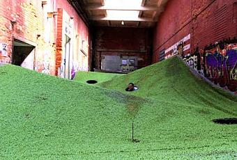 Il ont mis en place un terrain suspendu dans un ancien abattoir. Le terrain a été mis en herbe, suivant tout le cycle végétatif (il n'a pas été ici utilisé de plaque de gazon en rouleau par exemple). Il s'agit ici de faire prendre conscience aux visiteurs de la fragilité et de la force du cycle de la vie.