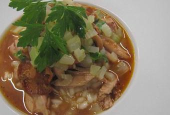 - Parsemez-le de copeaux de volaille, de quelques champignons et d’une cuillčre de brunoise de céleri.