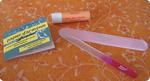- la lime à ongles en verre. Inusable, inrayable, abrasive juste ce qu'il faut MAIS hautement cassable (et ça c'est ballot). 12 euros la marque Vitry chez Carrefour. J'ai cru que le petit truc rose en nubuck était un étui, ben tintin. C'est juste pour faire joli dans l'emballage (les boules, et encore plus les boules quand j'en ai vu une chez Sephora AVEC étui pour 8 euros. Bref).