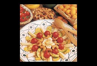 - Disposer dans un saladier les tronçons de palmier, les tomates cerise, les lamelles d'avocat ainsi que les noix de cajou. Verser la sauce par-dessus et mélanger délicatement.