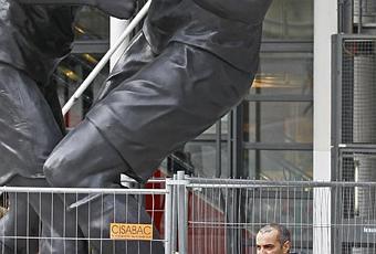 Intitulée » Coup de tête » (2012), cette statue de bronze de plus de cinq mètres de haut et de plusieurs tonnes a été posée mardi sur la Piazza de Beaubourg, dans le cadre d’une exposition d’oeuvres d’Adel Abdessemed, qui ouvre au public le 3 octobre.