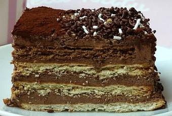 Recommencer en alternant une rangée de biscuits trempés dans le café et une couche crème au beurre (vous obtiendrez 4 rangées de biscuits et 4 couches de crème) en terminant par une couche de crème.
