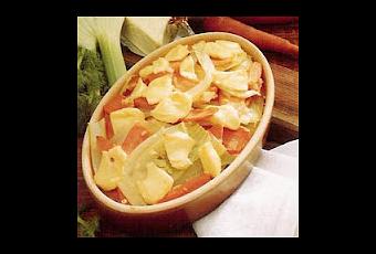 - Enduire un plat à four creux du reste de beurre. Y mettre les carottes, le fenouil et l'oignon. Arroser de jus de citron et répartir à la surface de mozzarella en lamelles.