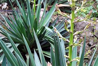 Côté jardin, les hampes de yuccas nous préparent à une mise en valeur d'une partie de jardin bien trop verte...