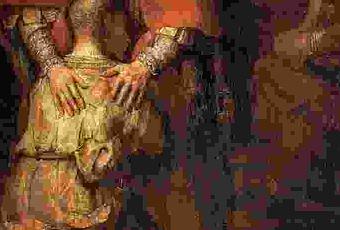 Ce retour de l'enfant prodigue sur les genoux (au sens propre) aves un père qui le prend dans ses bras comme un bébé avant de le recouvrir de sa cape protectrice, voici le thème biblique bien revisité.